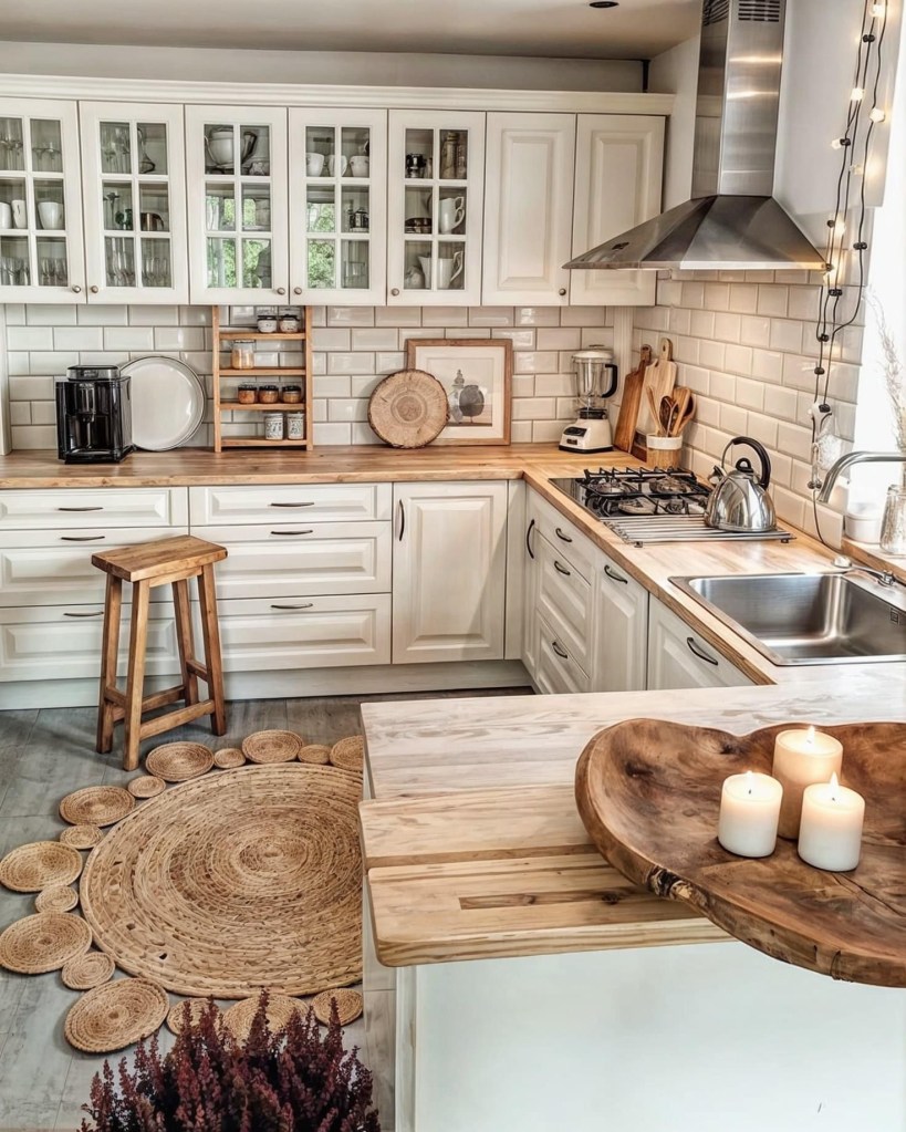 - Choisissez des bancs de cuisine en bois pour une touche rustique et confortable.